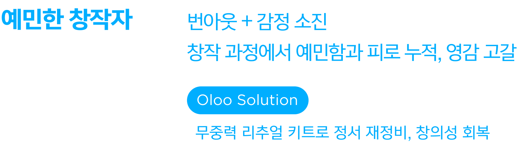 둥근 곡선과 리듬감 있는 간격은 울루가 추구하는 감각 회복, 정서적 안정, 몽환적 몰입을 은유적으로 전달합니다. 여백, 부드러운 곡선, 청량한 색감으로 감정의 흐름을 시각화합니다. 사용자는 조용한 무중력 속에서 스스로의 감정에 천천히 집중할 수 있습니다.